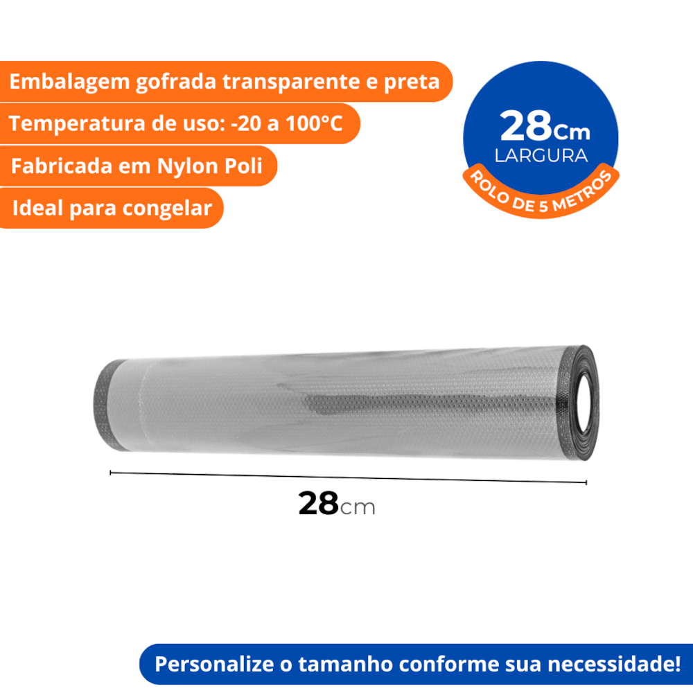 Garanta a máxima conservação dos seus alimentos e produtos com o Saco para Seladora a Vácuo Selovac 28X500cm Gofrado Transparente e Preto! Com rolo de 5 metros, é fabricado em Nylon Poli de alta qualidade, 100% livre de BPA, a escolha ideal para a conservação eficiente de alimentos e outros produtos. Compatível com as máquinas Selovac LNS600, LNS750 e LNS800, e oferece vedação eficiente em qualquer equipamento. Suporta temperaturas de -20 a 100ºC, garantindo preservação e frescor por mais tempo. Basta personalizar o tamanho de acordo com seu produto, e pronto! Não perca tempo, tenha a segurança de um vácuo perfeito, aproveitando a durabilidade e proteção com as embalagens Selovac. Compre agora mesmo!
